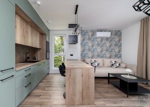 - funkcjonalny aneks kuchenny (wyposażony w płytę indukcyjną, okap, piekarnik, lodówko-zamrażarkę i zmywarkę oraz mikrofalę);