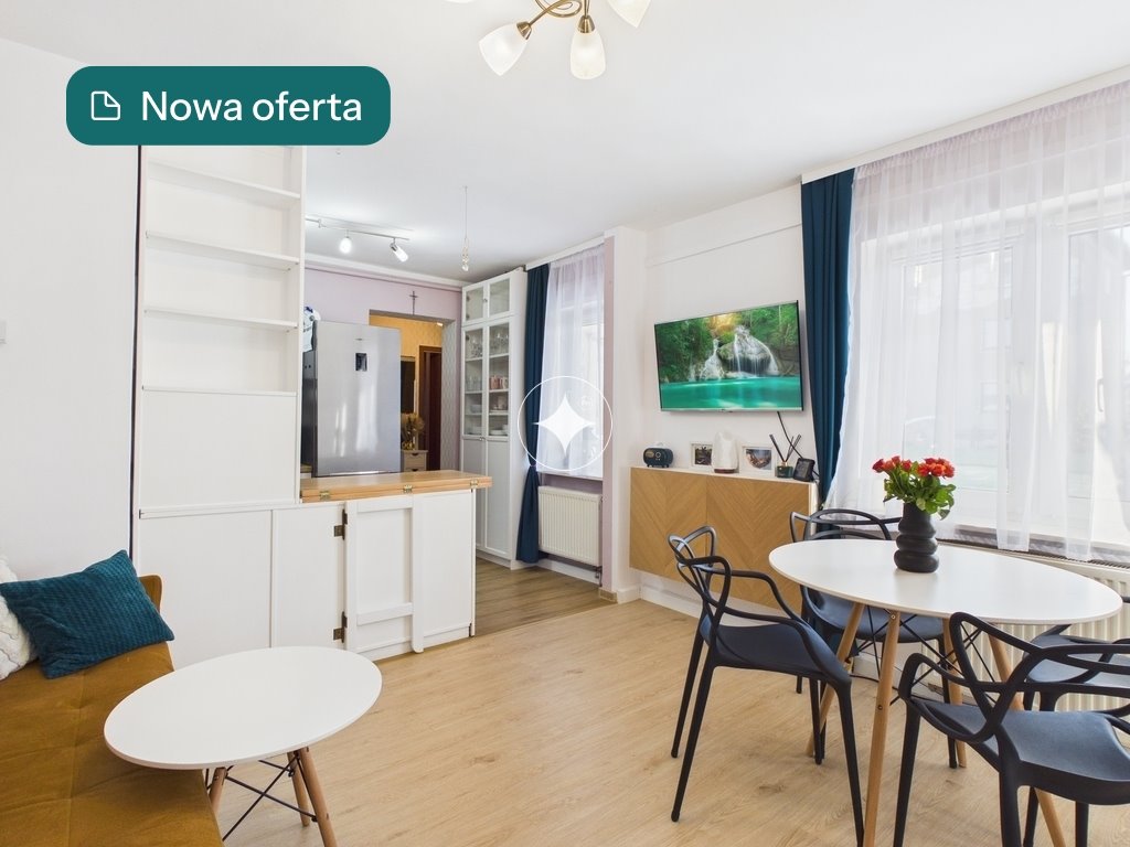 Mieszkanie jest odnowione, wyposażone w sprzęt RTV i AGD (m.in. telewizor, zmywaka, lodówka, pralka).