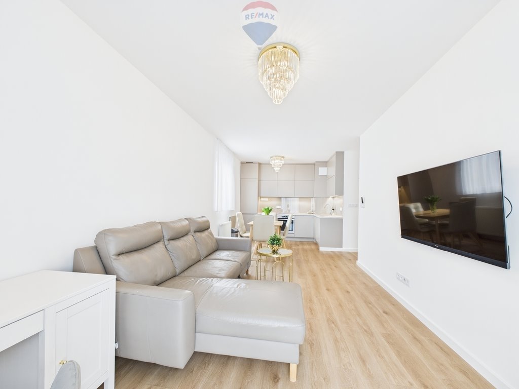 - funkcjonalnego aneksu kuchennego wyposażonego w sprzęt AGD (lodówko-zamrażarka, piekarnik, płyta indukcyjna, okap, zmywarka) oraz drobne wyposażenie niezbędne do codziennego funkcjonowania,