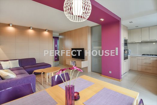Serce mieszkania stanowi wygodny salon otwarty na wyposażoną kuchnię. Z salonu wychodzi się także na balkon, ukazujący panoramę miasta. Przy kuchni niewielka skrytka z miejscem na pralkę i niezbędne sprzęty taki jak odkurzacze, suszarki na ubrania itp.