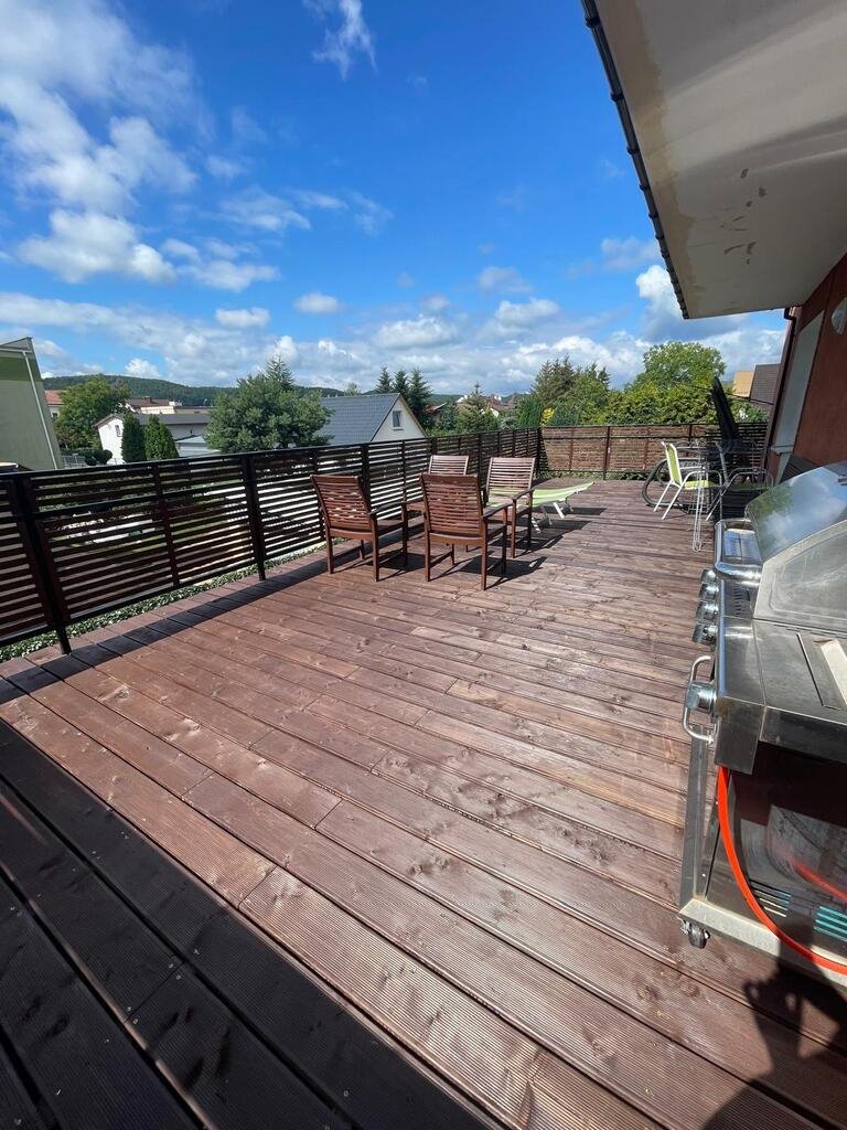 Apartament o powierzchni 120m2 znajduje się na 1 piętrze nieruchomości wolnostojącej. Składa się z przedpokoju, dużego salonu połączonego z kuchnią i jadalnią, sypialni z wyjściem na taras, pomieszczenia gospodarczego, łazienki oraz dużego 50m2 tarasu. Ogromnym atutem apartamentu jest widok na park. Rozkład okien na 3 strony świata, południe taras salon sypialnia, apartament jasny, nasłoneczniony.