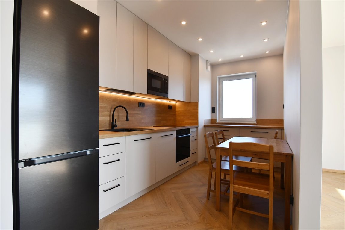 Na wyposażaniu mieszkania min. kuchnia w zabudowie z płytą indukcyjną, piekarnikiem, mikrofalówką, zmywarką oraz lodówką, stół i krzesła. W salonie narożnik z funkcją spania, stolik kawowy, stolik RTV, telewizor, klimatyzator. W mniejszej sypialni łóżko z materacem, szafa, komoda. W większej sypialni szafa, komoda, regał. W łazience wanna, pralka, suszarka, umywalka z lustrem, geberit. W przedpokoju szafa w zabudowie. Na życzenie najemcy istnieje możliwość wstawienia dodatkowych mebli.