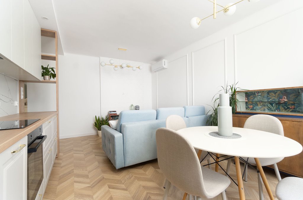 - Komfort: Mieszkanie posiada klimatyzację oraz wysokiej jakości sprzęt RTV/AGD.