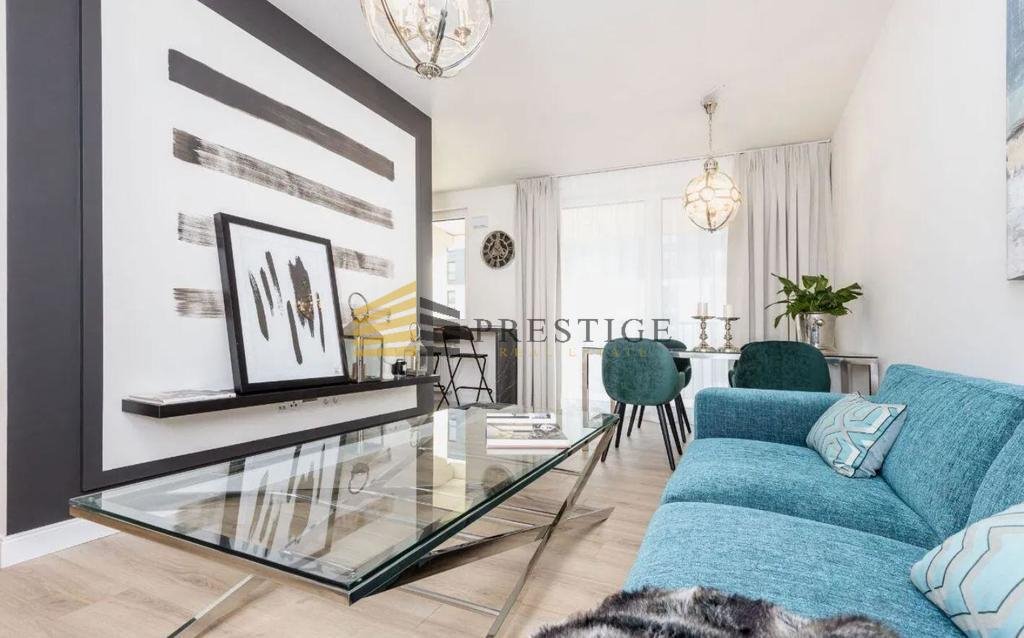 Eleganckie wnętrza urządzone w stylu New Classic. Mieszkanie jest w pełni wyposażone w najwyższej klasy sprzęty AGD, w tym pralkę, zmywarkę, lodówkę, piekarnik, płytę indukcyjną i okap. Designerskie meble oraz ciepłe oświetlenie tworzą przytulną atmosferę.
