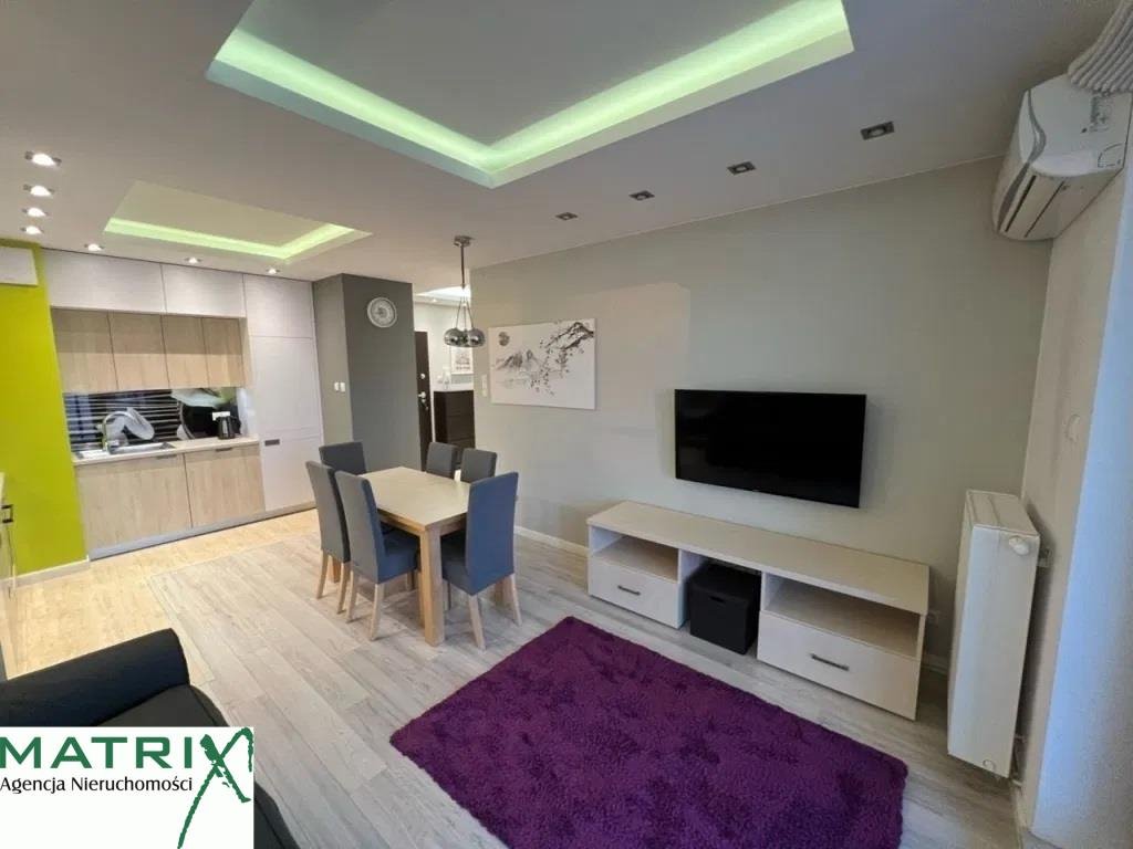 KLIMATYZACJA! Mieszkanie położone na kameralnym osiedlu strzeżonym SAKURA, zlokalizowanym w dobrym punkcie komunikacyjnym, w pobliżu GALERII MOKOTÓW oraz CENTRUM BIZNESOWEGO. Wykończone w bardzo dobrym standardzie. Nowoczesna aranżacja. Kompleksowo umeblowane. Otwarta na pokój kuchnia wyposażona w zabudowę wraz z AGD(zmywarka, mikrofala). W łazience wygodna wanna z opcją natrysku Pojemne szafy wnękowe. Mieszkanie jest ciche i słoneczne. Całości dopełnia ustawny balkon z pięknym widokiem w kierunku zielonego latem patio oraz toru treningowego wyścigów konnych. Do lokalu przynależy miejsce postojowe w garażu wielostanowiskowym pod budynkiem(opcja). Dodatkowo płatna tylko energia elektryczna! W pobliżu osiedla doskonała infrastruktura usługi, restauracje, sklepy np. duża BIEDRONKA. POLECAM! Kontakt: 795pokaż telefon. Zapraszamy na naszą stronę www.agencja-matrix.pl. Wynagrodzenie na rzecz Biura Nieruchomości, w przypadku realizacji kontraktu wynosi 50% naliczone od jednomiesięcznego czynszu najmu.