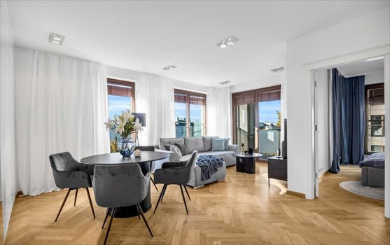 Klimatyzowane (klimatyzator w każdym pokoju), wykończone w wysokim standardzie 3- pokojowe mieszkanie o pow. 69 m2, położone na 4-tym piętrze w prestiżowym, nowoczesnym budynku. Osiedle posiada reprezentacyjną recepcję, piękne lobby, stacjonarną ochronę, monitoring oraz eleganckie części wspólne. Ekspozycja okien: zachód i północ.