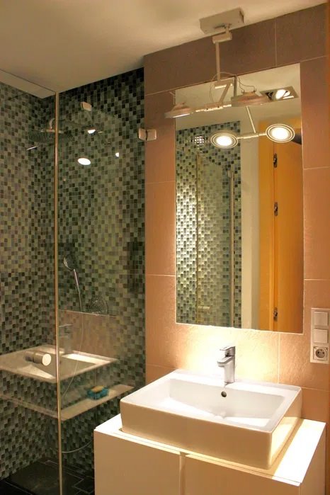 Łazienka z wysokiej klasy wykończeniem, prysznic, umywalka, toaleta i pisuar