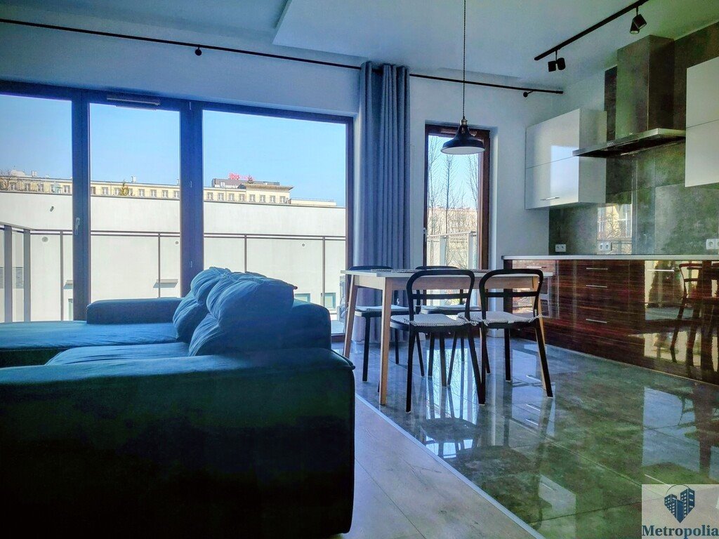 Bardzo komfortowe, przestronne, trzypokojowe mieszkanie w spokojnej części Ochoty, ul. Szczęśliwicka 60. Niska zabudowa, nowoczesne osiedle wybudowane w 2018 r.; strzeżone, zamknięte. Lokal składa się z panoramicznego salonu połączonego z widną kuchnią - całość 28 mkw; sypialni o pow. 11 mkw, drugiej sypialni/gabinetu/pokoju dziecka o pow 11,5 mkw; łazienki z w.c. (wanna i kabina) o pow. 7 mkw; garderoby o pow. 3,5 mkw - oraz przedpokoju z bardzo pojemną szafą wnękową. Mieszkanie dwustronne, z płn/płd wystawą, bez ekspozycji na ulicę, jest bardzo ciche. Z salonu wyjście na dużą loggię (7,5 mkw). Do dyspozycji najemcy poza gruntownie przygotowaną kuchnią pozostaje w salonie: stół i cztery krzesła, rozkładana kanapa, fotel, stolik kawowy, regał, telewizor; w sypialni: komoda, łóżko małżeńskie; w drugiej sypialni/gabinecie: biurko z fotelem, nowe sofa rozkładana oraz szafa wolnostojąca. Garderoba zorganizowana serią półek oraz drążkiem na długą odzież. Mieszkanie nie przegrzewa się, ale jest zamontowana nowa klimatyzacja.