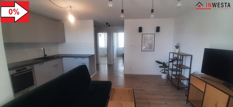 Salon umeblowany w kanapę, stół z krzesłami, szafeczki na sprzęt drobny; kuchnia wyposażona w wysokiej klasy sprzęt AGD (lodówko-zamrażarka, zmywarka, piekarnik); na podłogach nowoczesna terakota ( kuchnia, łazienka) w pokojach eleganckie panele drewniane. Dodatkowo lokal wyposażony w podstawowe sprzęty niezbędne do funkcjonowania tj talerze, salaterki, szklanki ...