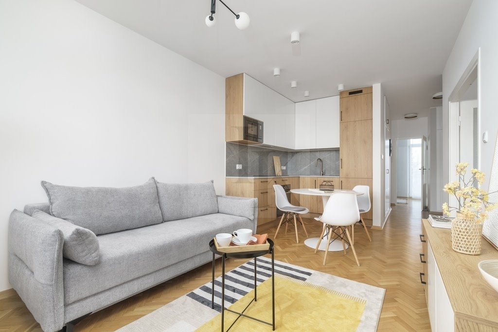 W pełni umeblowane i wyposażone. Mieszkanie po generalnym remoncie. W salonie znajduje się rozkładana kanapa, szafka rtv, stół z krzesłami, pufa, stolik kawowy. Z salonu wyjście na balkon, z niesamowitym widokiem na zabytkową architekturę Starego Miasta. Kuchnia wyposażona w sprzęt agd (zmywarka, płyta grzejna, piekarnik, okap, chłodziarka z zamrażalką). W przedpokoju znajdują się dwie pojemne szafy wnękowe. Łazienka z prysznicem typu walk-in, z umywalką, szafkami w zabudowie oraz z pralką. W sypialni podwójne łóżko z szufladami, szafka nocna, fotel, stolik oraz szafa wnękowa. Z sypialni jest wyjście na niewielki balkon z widokiem na ciche podwórko. W gabinecie znajduje się szafa wnękowa, biurko z krzesełkiem, regalik oraz fotel. Mieszkanie bardzo zadbane, gotowe do wprowadzenia.