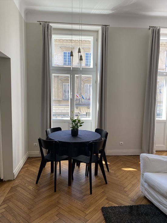 The apartment is double-sided. The windows overlook both Nowy Świat Street and the patio.