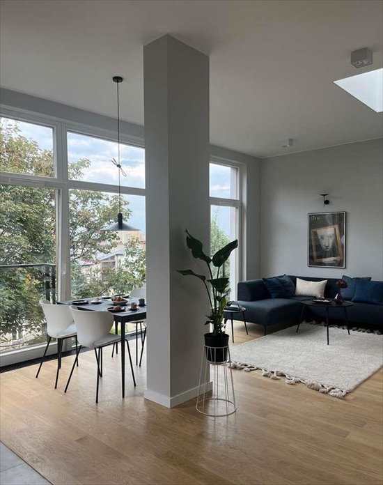 Polecam Państwa uwadze wyjątkowy penthouse w nowym apartamentowym budynku na pograniczu Żoliborza i Bielan, Marymoncie , przy ul. Oksywskiej 26. Lokal o metrażu 67,22m jest trzypokojowy i znajduje się na ostatnim, drugim piętrze. Z pokoju dziennego jest wyjście na 11 metrowy taras, z którego schody prowadzą na zielony dach o powierzchni 70m kw, będący w wyłącznym użytkowaniu Najemcy. Z obu pozostałych pokoi są wyjścia na słoneczny balkon. Apartament jest przestronny, jasny, o wyjątkowej wysokości - 310cm. Salon ma okna wzdłuż całej 5,5 metrowej ściany, a dodatkowo część dzienną doświetlają dwa duże okna połaciowe. Dzięki temu widok jest unikalny - ściana zieleni przed oknami! Apartament jest umeblowany w wysokim standardzie, ma też trzy wygodne garderoby. Budynek został oddany do użytku w tym roku, w apartamencie nikt jeszcze nie mieszkał.
