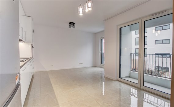 - salonu połączonego z aneksem z wyjściem na balkon i z dużymi oknami