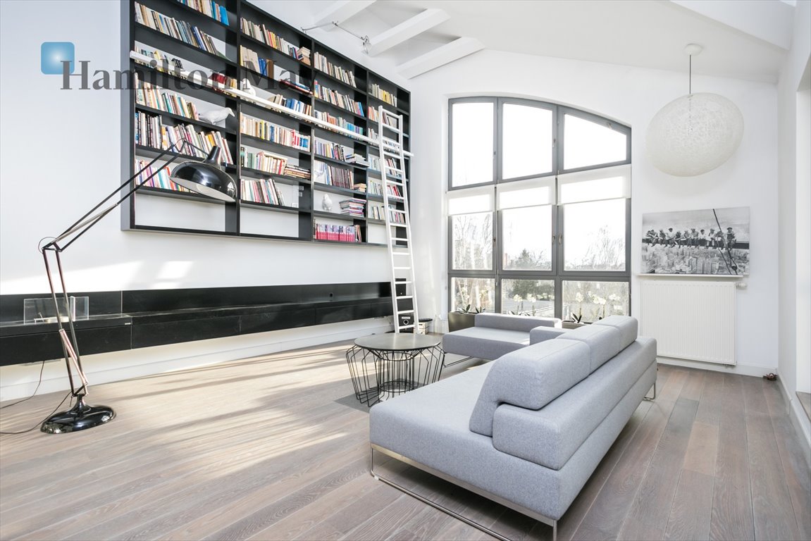 Apartament o powierzchni 181m2 usytuowany jest na ostatnim, trzecim piętrze kameralnego budynku w którym znajduje się łącznie osiem apartamentów. Niepowtarzalny charakter wnętrza nadają duże okna, bardzo wysoki salon z biblioteką, wolnostojąca wanna na antresoli z widokiem na salon oraz wysoka jakość zastosowanych materiałów.
