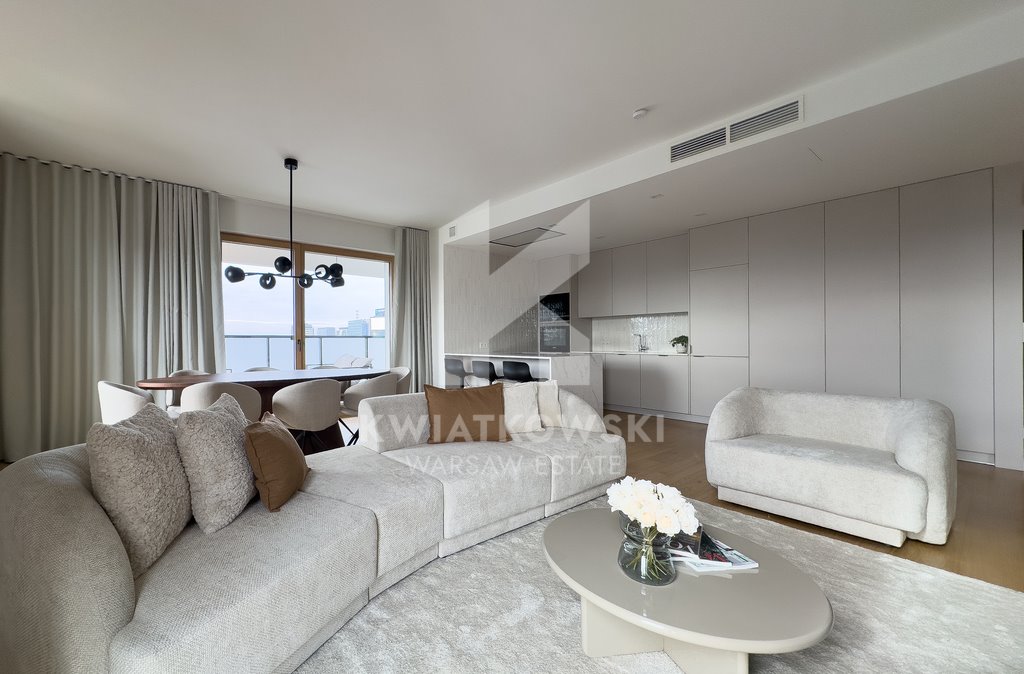 Do wynajęcia wyjątkowy, 5-pokojowy apartament o powierzchni 125 m², położony na 8 piętrze nowej inwestycji zlokalizowanej przy ul. Prostej – tuż obok Ronda Daszyńskiego i 19. Dzielnicy.