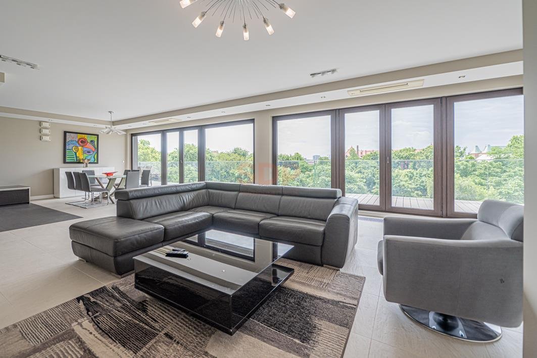 I recommend a luxurious apartment on the top floor of the area for rent. 240m2, 6 rooms, 3 bathrooms, 2 wardrobes, 4 parking spaces with a unique view, located in the "Rezydencja Botanica" investment at Sienkiewicza / Matejki Street. The entire facility is closed with monitoring and security and individual access to the indicated floor.