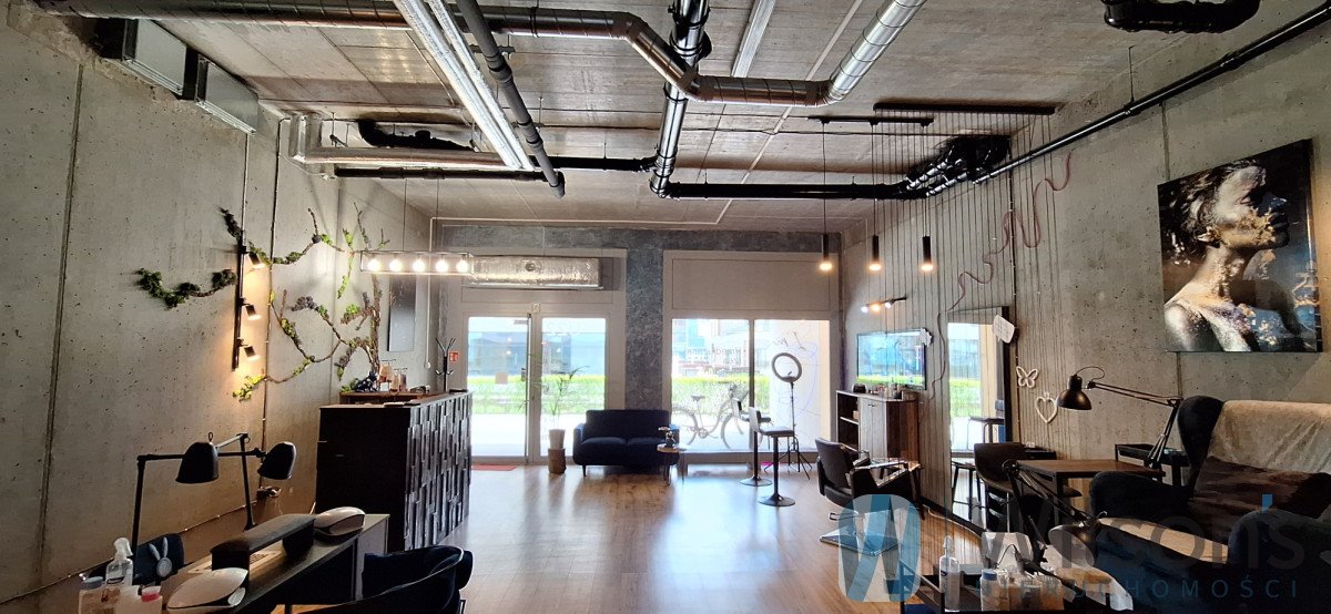 Lokal parterowy z dużą witryną, zapewniające dobrą ekspozycję na ruch pieszy mieszkańców osiedla.