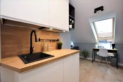 Biuro Stoprocent Nieruchomości prezentuje nową, w pełni umeblowaną kawalerkę na wynajem. Mieszkanie położone jest przy ul. Witol...