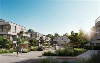 Na ternie osiedla uwzględniono też stylowe elementy małej architektury – pergole, ławy, oświetlenie, kosze na śmieci – oraz ogrodzenie, monitoring, portiernię, szlaban i furtkę.