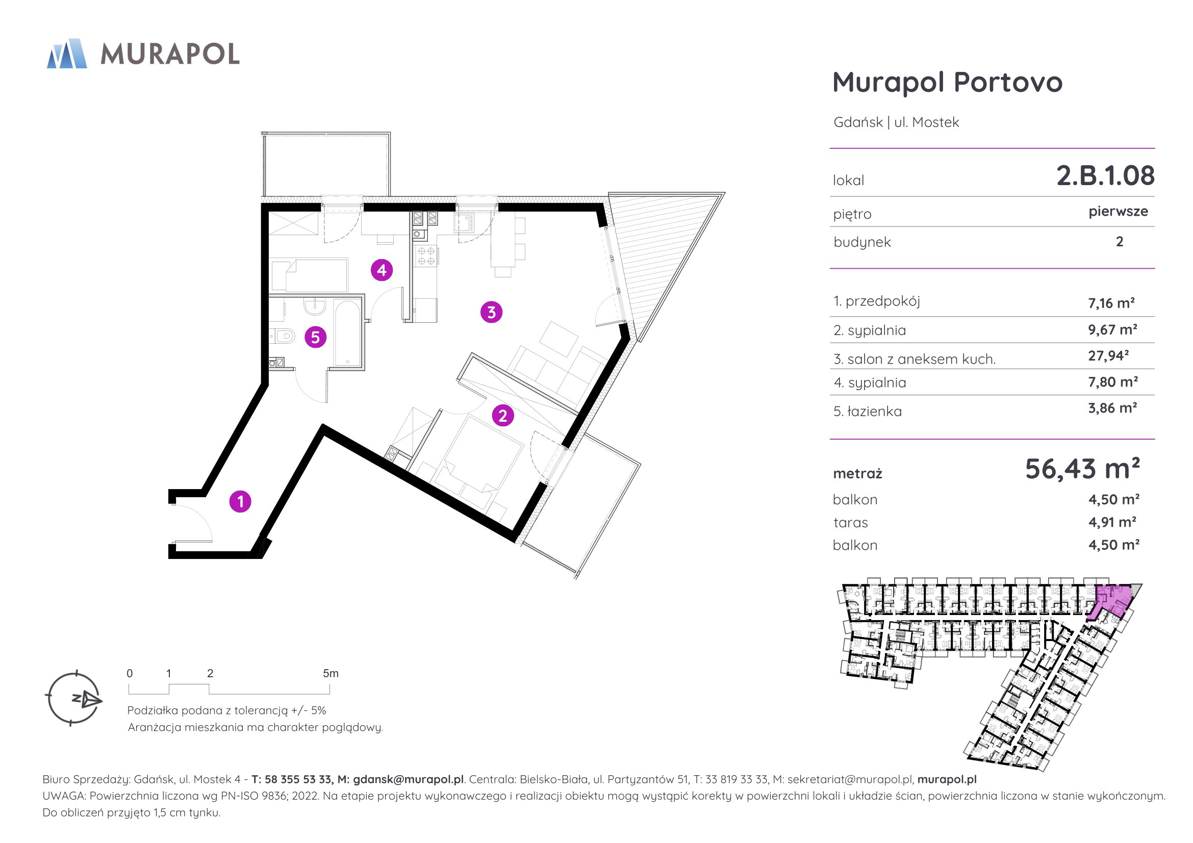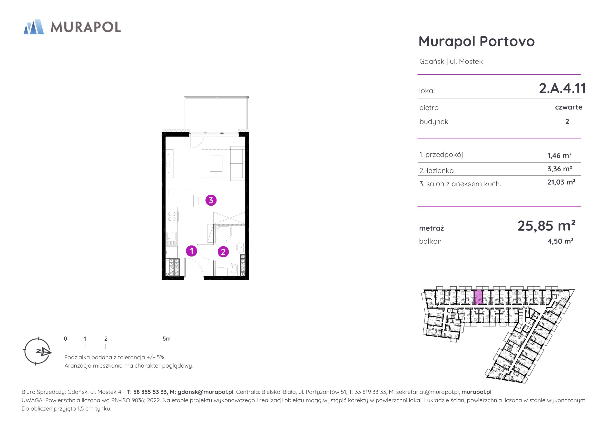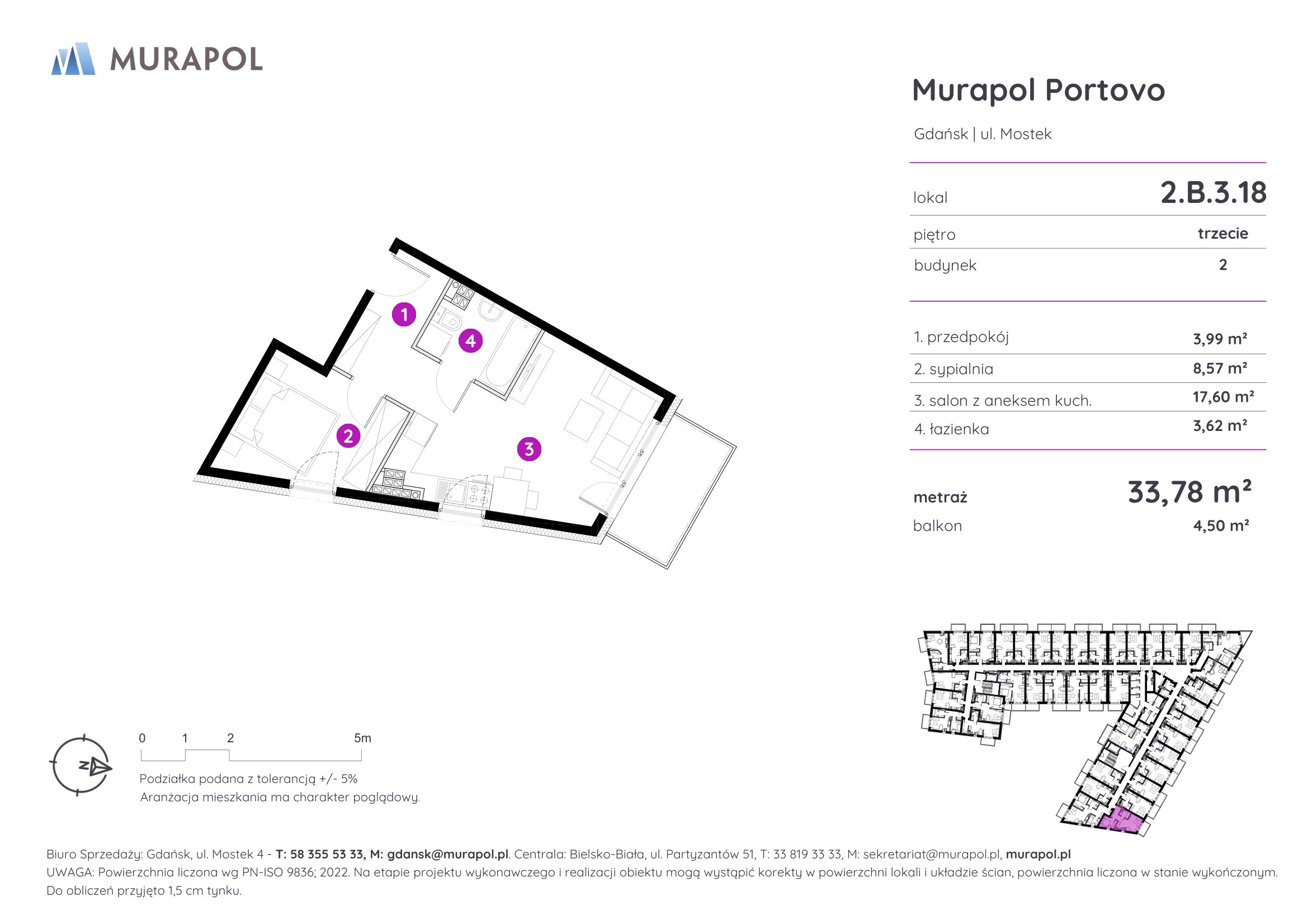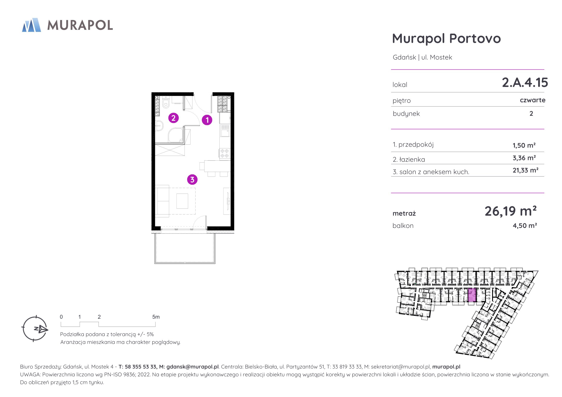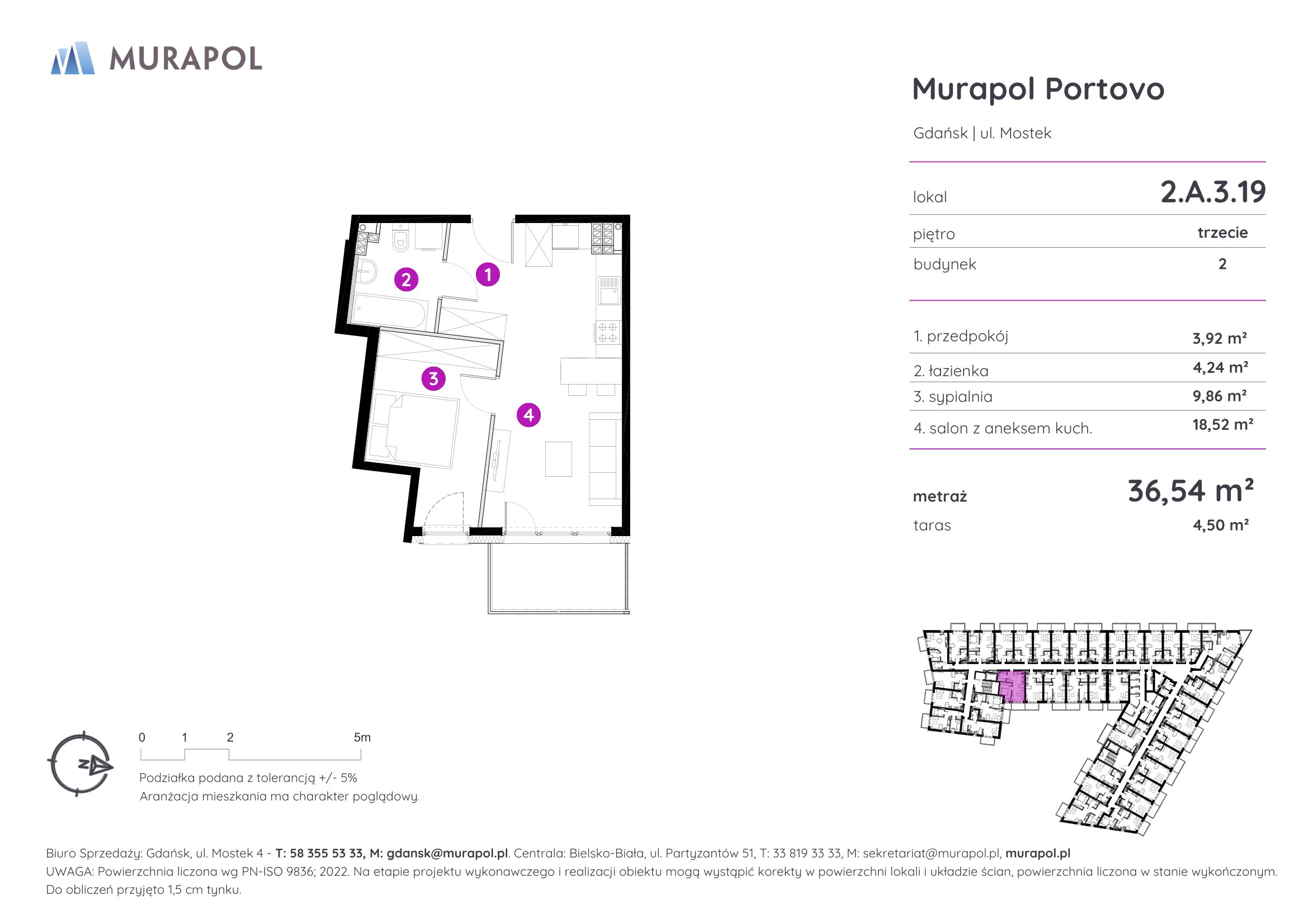 Murapol Portovo jest położone w północno-wschodniej części Śródmieścia, u zbiegu Opływu Motławy i uchodzącej do morza Martwej Wisły. Malowniczy krajobraz okolicy przywodzi na myśl łodzie i statki przybijające do portu po pełnej zmagań żegludze na Zatoce Gdańskiej. W rzeczywistości w sąsiedztwie inwestycji nie brakuje kołyszących się wśród szuwarów i na przystaniach łódek, kutrów oraz stateczków.