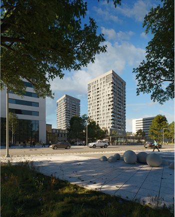Projekt przedstawia architekturę nowoczesną, funkcjonalną, współgrającą z otaczającą ją zabudową. Inwestycja składa się z dwóch siedemnastopiętrowych wież, połączonych ze sobą w trzech dolnych kondygnacjach.