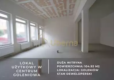 Jedyna oferta sprzedaży lokalu w stanie deweloperskimz dużą witryną od południowej strony. W okolicy CENTRUM Goleniowa i parking...