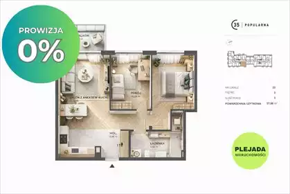 Na sprzedaż komfortowe, funkcjonalne 3-pokojowe mieszkanie o powierzchni 62,35 m², położone w okolicy Parku Reduta, w nowoczesny...